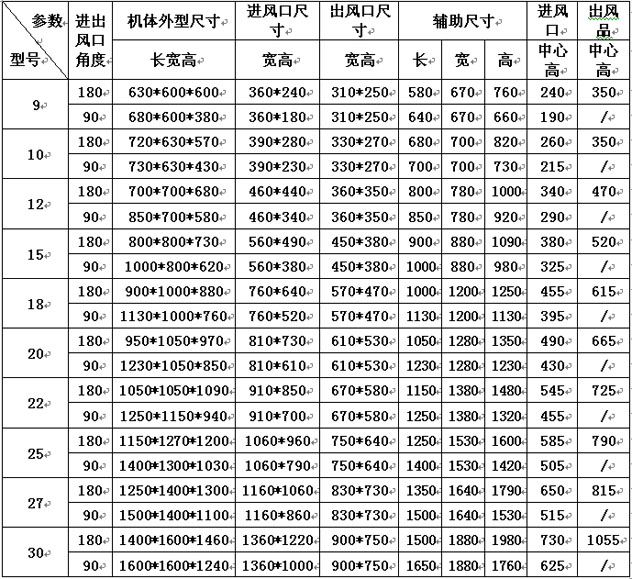 DEF系列低噪聲離心風(fēng)柜技術(shù)參數(shù)表: