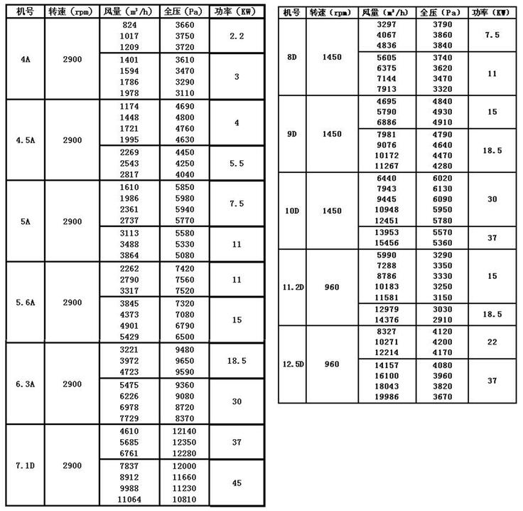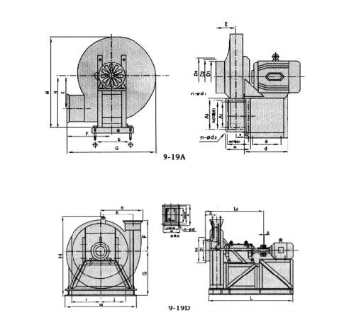 二、9-19系列風(fēng)機(jī)外形尺寸